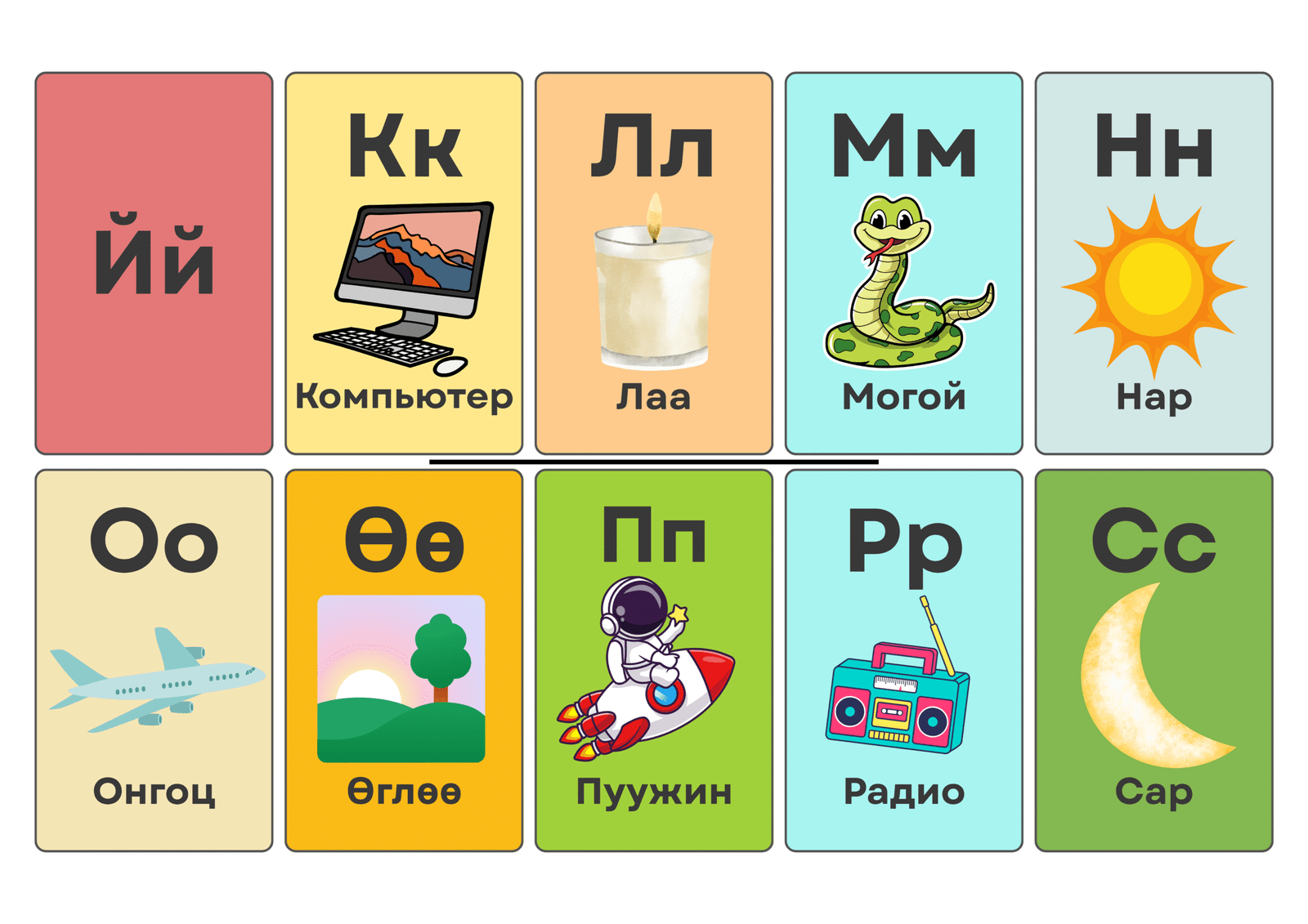 Хүүхдийг сонирхолтой аргаар үсэгээ мэддэг болоход туслах Монгол үсгийн картууд. Эхний 5 хүнд хүргэлт үнэгүй.